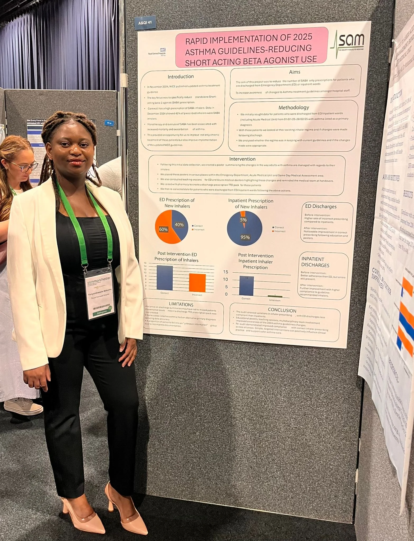 Dr. Vunyorohwashe Makurira, from Royal Cornwall Hospitals NHS Trust, presented an audit and quality improvement project at the Society for Acute Medicine’s 19th International Conference (SAMManchester 2025). The work examined how effectively the new national asthma guidelines, introduced in November 2024, have been adopted in clinical practice across the Trust.